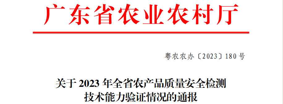 12月26日,廣東省農(nóng)業(yè)農(nóng)村廳發(fā)文通報2023年全省農(nóng)產(chǎn)品質(zhì)量安全檢測技術(shù)能力驗證情況。在本次能力驗證活動中,信測標(biāo)準再次取得4項全A的成績,展現(xiàn)出了過硬的專業(yè)素質(zhì)和高超的技能水平。