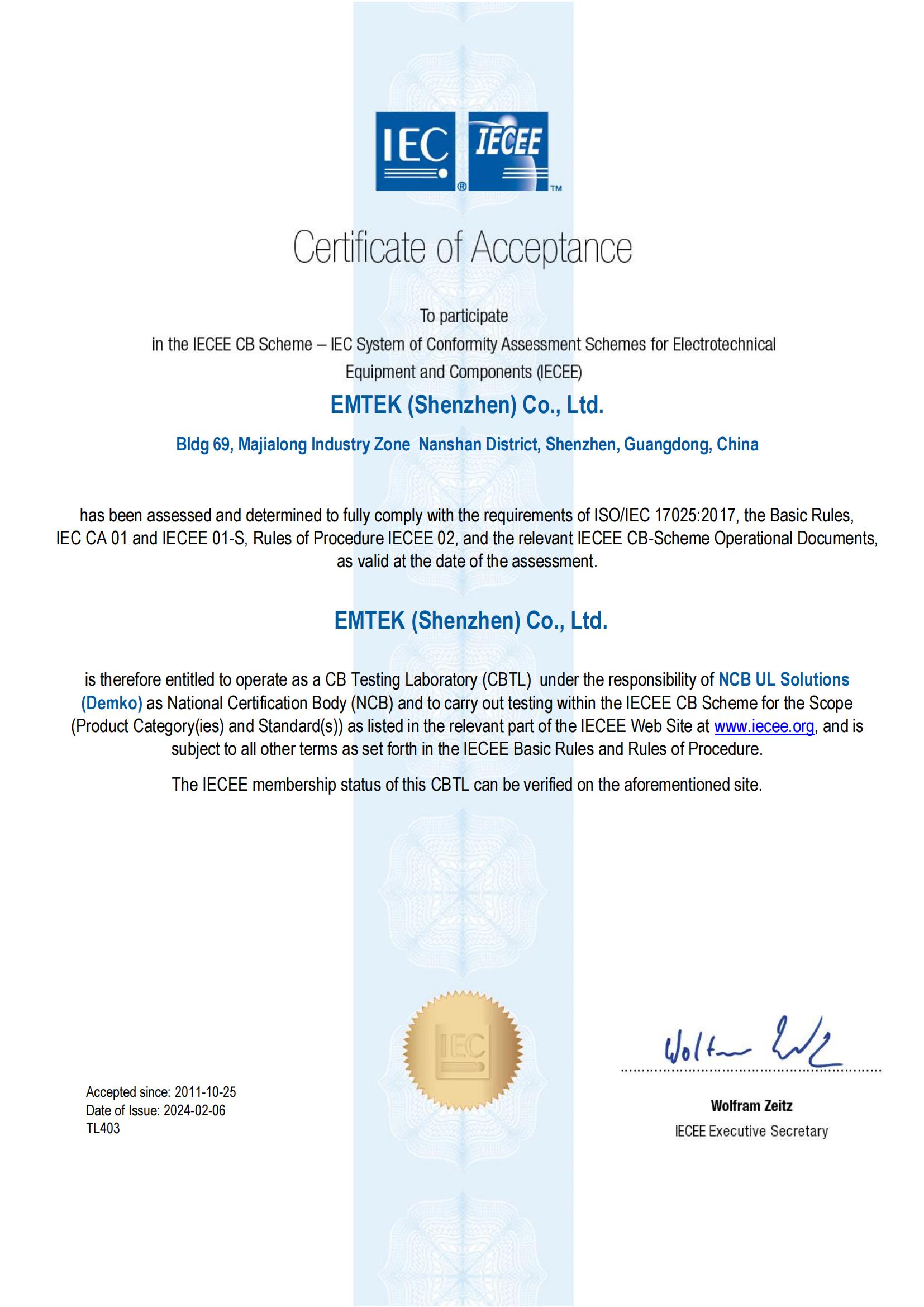 IECEE的認(rèn)證授權(quán)資質(zhì)證書(shū)