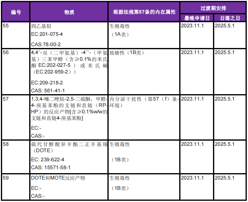 此外,根據(jù)法規(guī)要求,當達到授權(quán)物質(zhì)的日期要求時,ECHA需要考慮,這個物質(zhì)是否對人體健康或環(huán)境有不可充分控制的風險,若存在,則ECHA需要準備相應的卷宗來提出對該物質(zhì)的限值,此時,該授權(quán)物質(zhì)就有可能成為限值物質(zhì)了。