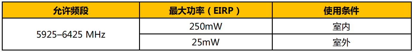 2022 年 8 月 4 日,毛里求斯信息和通信技術(shù)管理局(ICTA)發(fā)布了《關(guān)于在 5945-6425 MHz 頻率范圍內(nèi)為寬帶無線接入服務(wù)分配額外頻譜的決定》,允許 5945-6425 MHz 頻段可用于以下設(shè)備: