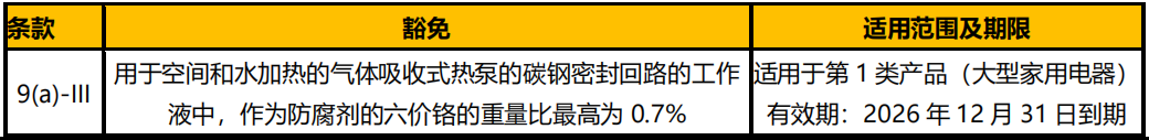 2023 年 1 月 26 日,歐盟委員會在其官方公報(OJ)上發(fā)布指令(EU) 2023/171,修訂了歐盟 RoHS 指令(2011/65/EU)附錄 III 的相關豁免項,新增第 9(a)-III 項關于六價鉻的豁免條款。