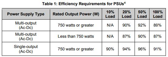 4.0 版本把電源輸出以750W 為界限劃定了不同的能效要求: