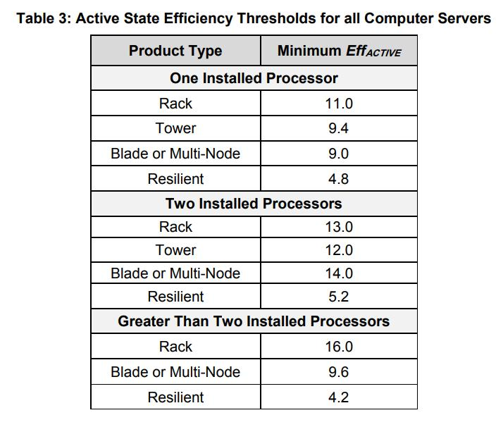 4.0 版本中對于非大容量服務器的活動狀態(tài)效率閾值要求:
