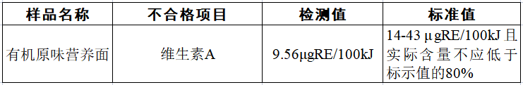 《食品安全國家標(biāo)準(zhǔn) 嬰幼兒谷類輔助食品》(GB 10769—2010)中規(guī)定,嬰幼兒谷類輔助食品中維生素A含量應(yīng)在14—43μgRE/100kJ范圍內(nèi),《食品安全國家標(biāo)準(zhǔn) 預(yù)包裝特殊膳食用食品標(biāo)簽》(GB 13432—2013)中規(guī)定,在產(chǎn)品保質(zhì)期內(nèi),能量和營養(yǎng)成分的實(shí)際含量不應(yīng)低于標(biāo)示值的80%。