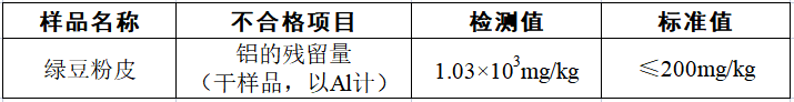 《食品安全國家標(biāo)準(zhǔn) 食品添加劑使用標(biāo)準(zhǔn)》(GB 2760—2014)中規(guī)定,粉絲、粉條中鋁的最大殘留限量值(干樣品,以Al計)為200mg/kg。