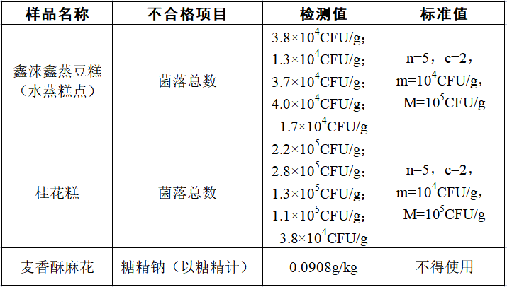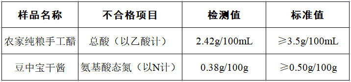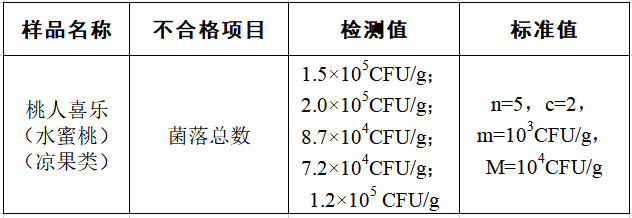 監(jiān)督抽檢不合格食品具體情況: