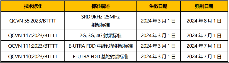2023 年1 月10 日,越南信息通信部(MIC)發(fā)布了關(guān)于陸地移動通信設(shè)備無線接入部分的國家技術(shù)法規(guī)(QCVN