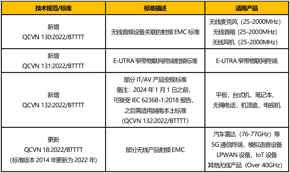 2023年2月8日,越南電信部(MIC)發(fā)布強制認證法規(guī)草案,將取代去年5 月發(fā)布的02/2022/TT-BTTTT。新草案當前尚在公咨期,預計第二季度正式發(fā)布。