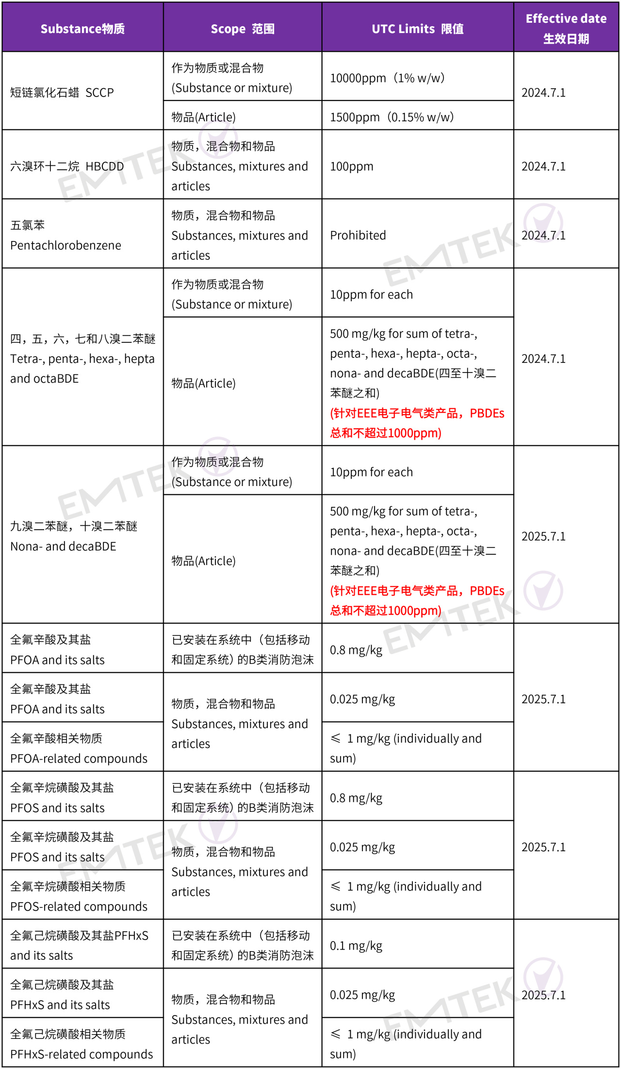 2023年12月12日,澳大利亞發(fā)布了2023年工業(yè)化學(xué)品環(huán)境管理(登記)修訂案,新增多種持久性有機污染物(POPs)于表6和表7中,限制這些POPs的使用,新增的限制將分別于2024年7月1日和2025年7月1日開始實施,更新后要求基本跟歐盟的POPs 法規(guī)一致除了個別要求。