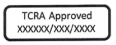 6. 新增TCRA 標(biāo)簽要求,內(nèi)容和樣式如下圖。其中XXXXXX/XXX/XXXX 為證書編號,標(biāo)簽應(yīng)使用 Arial 字體(字號最小為5)。允許使用電子標(biāo)簽。