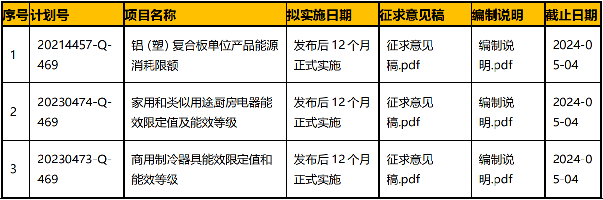《商用制冷器具能效限定值和能效等級(jí)》等 3 項(xiàng)國(guó)家標(biāo)準(zhǔn)的征求意見稿,現(xiàn)公開征求意見。請(qǐng)于2024年5月4日前將意見反饋給組織起草部門。
