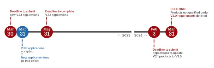 針對(duì)現(xiàn)有申請(qǐng),在寬限期內(nèi),申請(qǐng)人可以將CoC 續(xù)展,期限最長(zhǎng)為一年。然而,自2024 年 5 月 1 日起,將不再允許更新現(xiàn)有CoC。相反,應(yīng)通過提交平行比較(PBC)申請(qǐng)來更新相關(guān)設(shè)備的現(xiàn)有認(rèn)證并符合最新的技術(shù)規(guī)范要求。