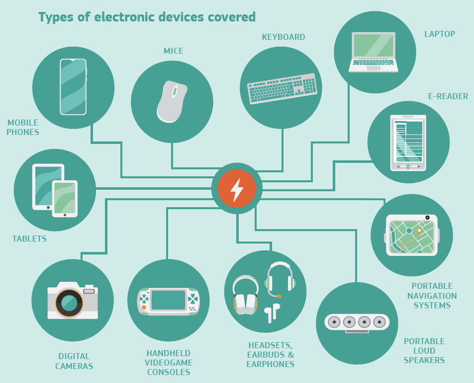該修訂指令涵蓋手機(jī)、平板電腦、數(shù)碼相機(jī)、頭戴式耳機(jī)、帶麥克風(fēng)的頭戴式耳機(jī) 、手持游戲機(jī)、便攜式揚(yáng)聲器、電子書、鍵盤、鼠標(biāo)、便攜導(dǎo)航、入耳式耳機(jī)及筆記本電腦等共13類無(wú)線設(shè)備。