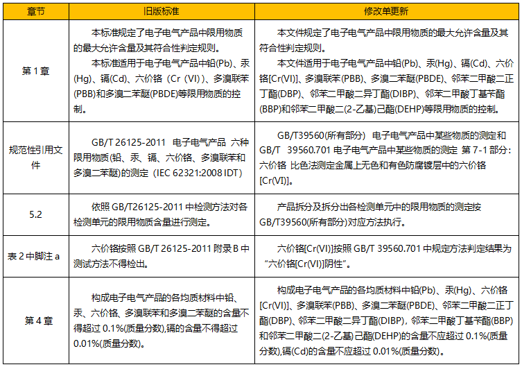 將原有的測試方法標準GB/T 26125-2011更新為GB/T 39560(所有部分)電子電氣產(chǎn)品中某些物質(zhì)的測定。