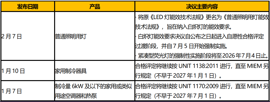 烏拉圭工業(yè)、能源與礦業(yè)部(MIEM)于2025 年1 月以來發(fā)布多項(xiàng)能效要求相關(guān)決議,見表2。