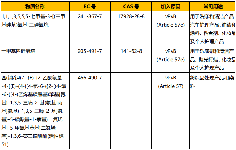 新增的 3 項(xiàng)評(píng)議物質(zhì)具體如下: