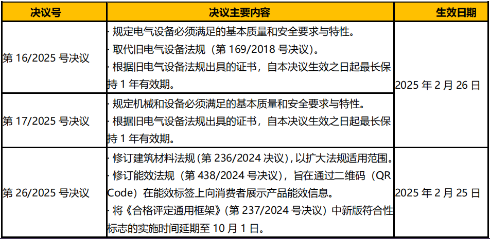 阿根廷工商秘書處于 2025 年 2 月 25 日發(fā)布多項(xiàng)安全和能效相關(guān)決議,見表 1: