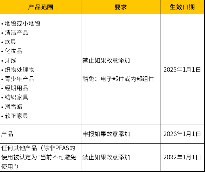 ? 新增第 11 點:允許在歐盟內(nèi)已經(jīng)使用含有 PFOA 及其鹽類和相關(guān)化合物的以下產(chǎn)品在特定豁免期滿后繼續(xù)使用: